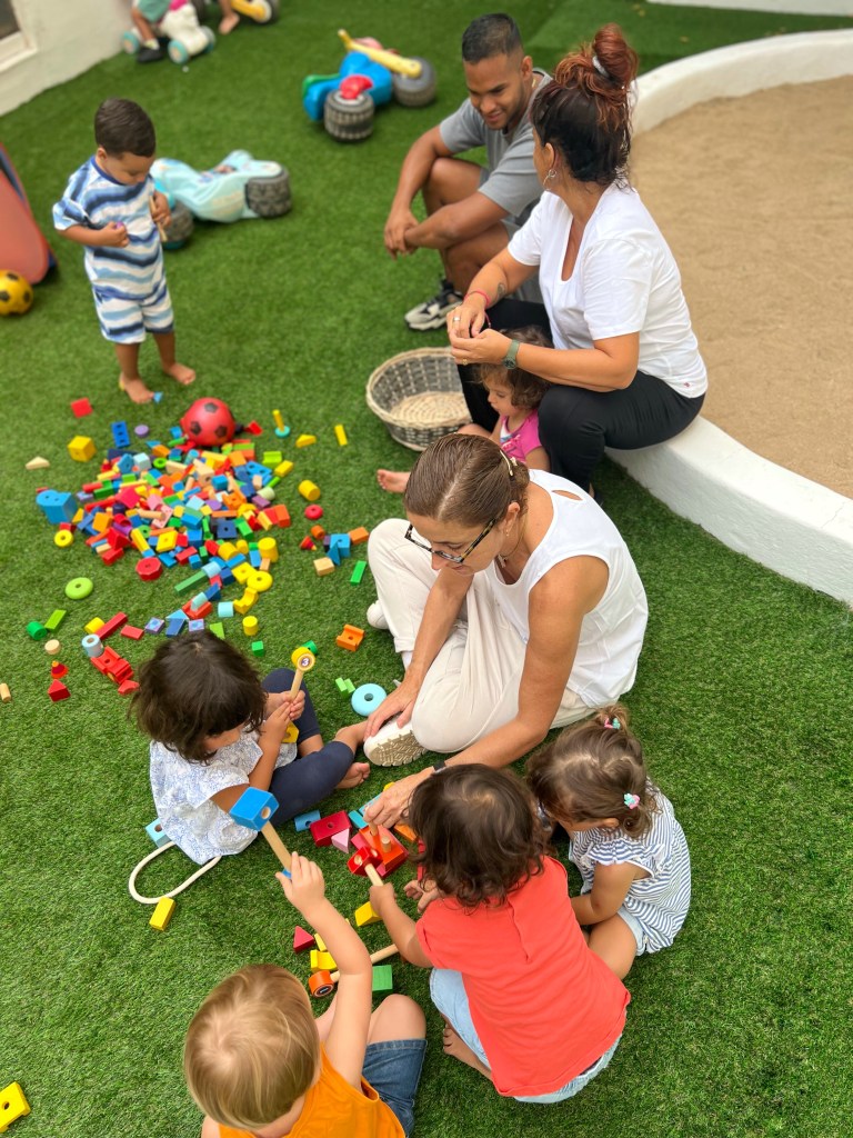 L’eix central de la nostra tasca va dirigida a l’atenció individualitzada dels infants i, en el dia a dia, esdevenen imprescindibles les estones de joc, les cançons, la música, els contes, les titelles, les primeres paraules, les activitats de moviment, les activitats d’experimentació, els primers gargots, els somriures, les mirades de complicitat, les carícies i l’estimulació sensorial. Entre d’altres activitats concretes que fem son: Jocs d’experimentació amb diferents tipus de material. Fer, escoltar i aprendre música i els diferents instruments musicals. Ioga i psicomotricitat Pikler. Natació i anglès. Celebrar les festes tradicionals, com la Castanyada, el Tió, el Patge Reial, l’Elf de Nadal, la rúa de Carnaval, la Mona de Pasqua, Sant Jordi. Sortides educatives i culturals a la ludoteca, la biblioteca, la fira de nadal del barri, la granja, la platja, l’auditori i les coves de sal.